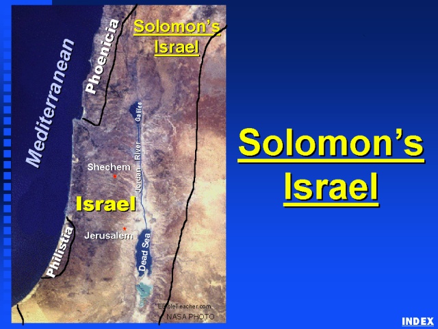 Solomon’s Israel was the period in which Israel was at its greatest. Solomon’s Israel was so large that it can’t all be shown on this NASA photo.